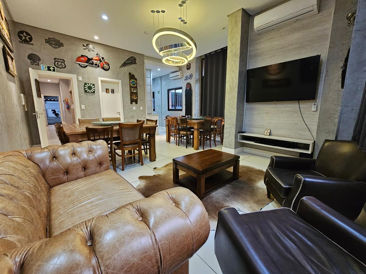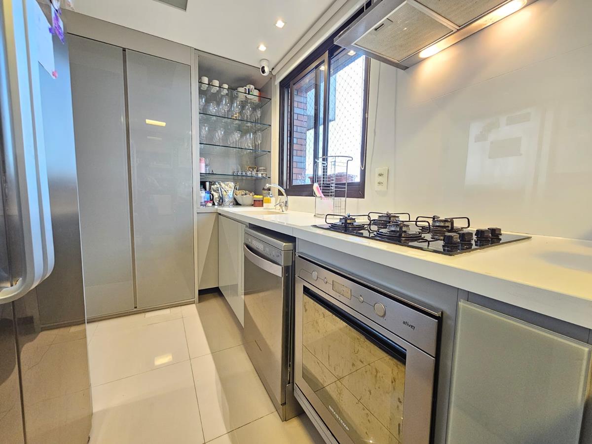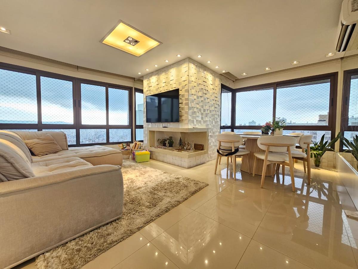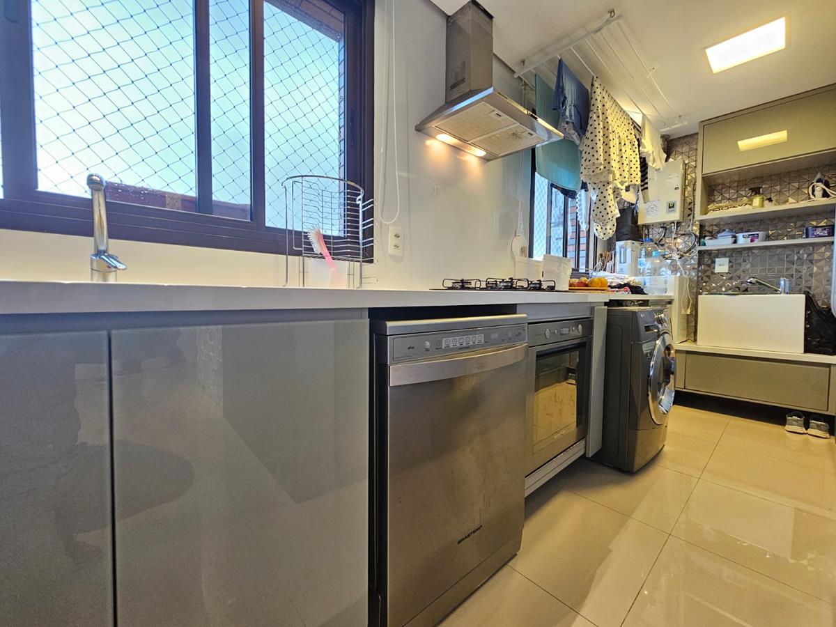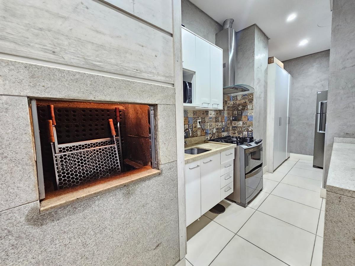 Possui living amplo e aconchegante distribuídos em dois ambientes com lareira e churrasqueira, lavabo, cozinha totalmente planejada e mobiliada com área de serviço integrada.