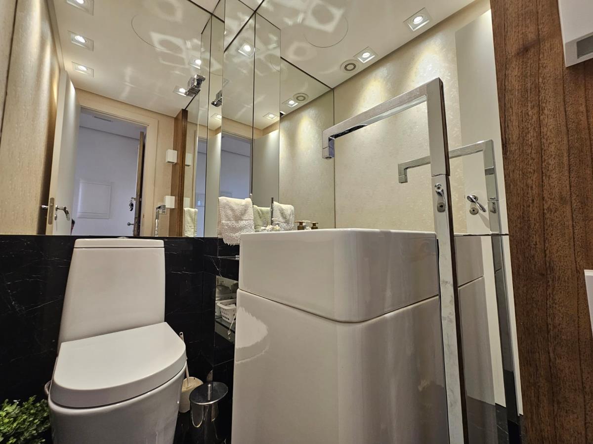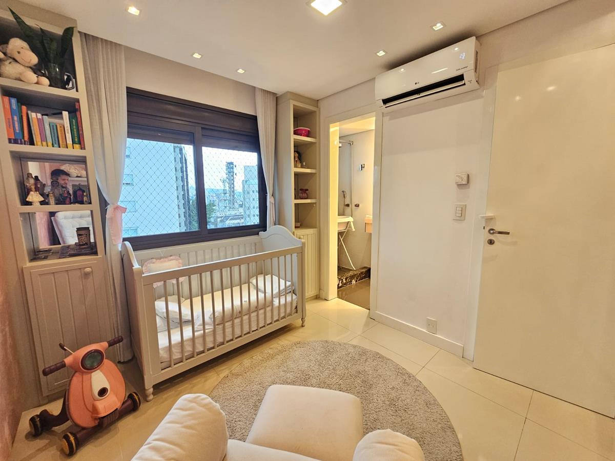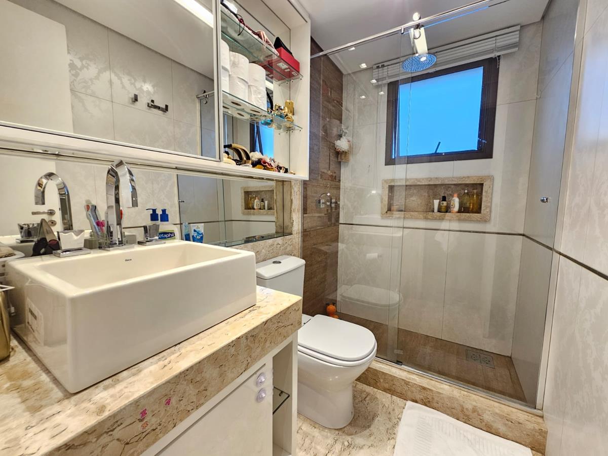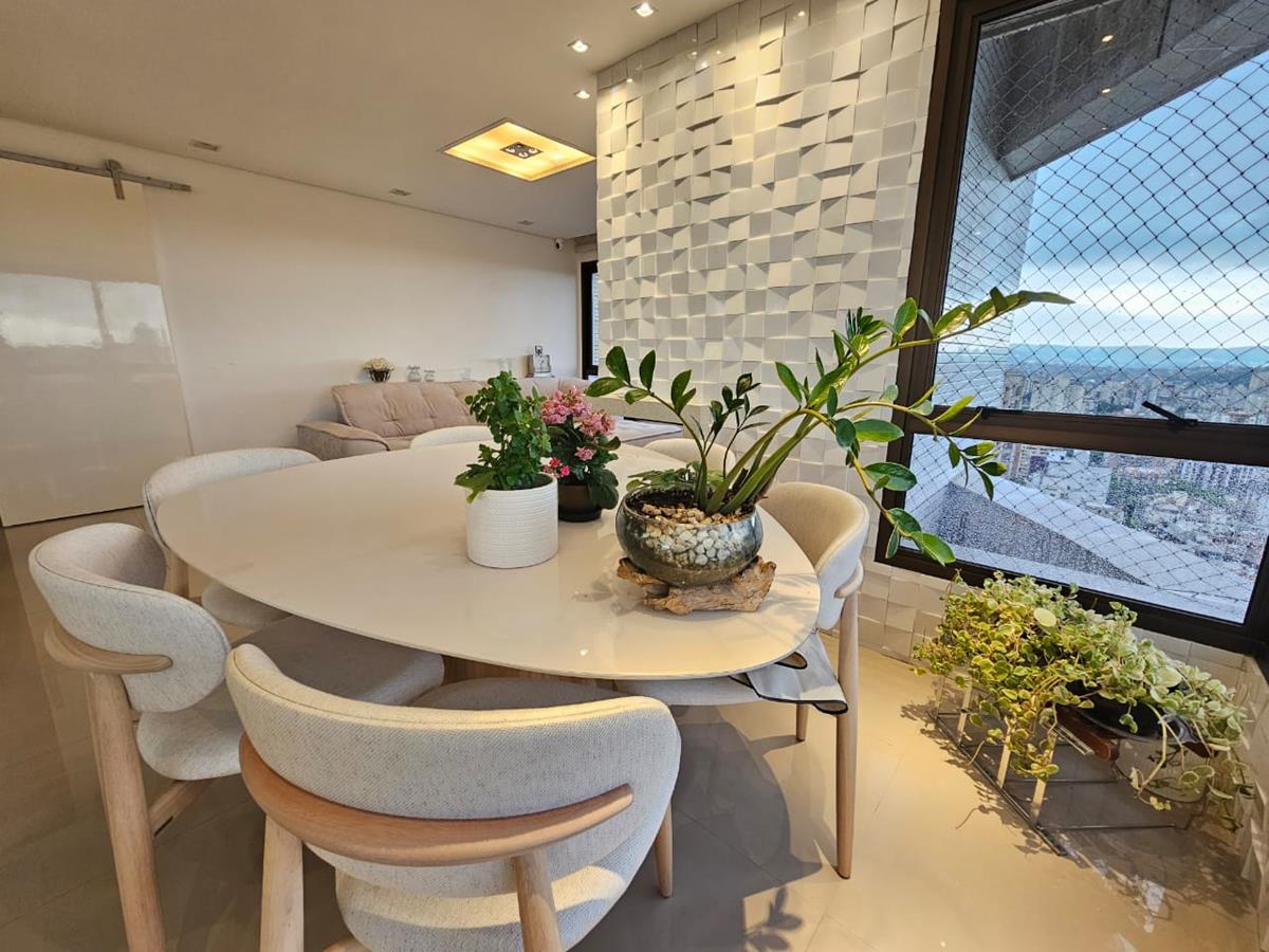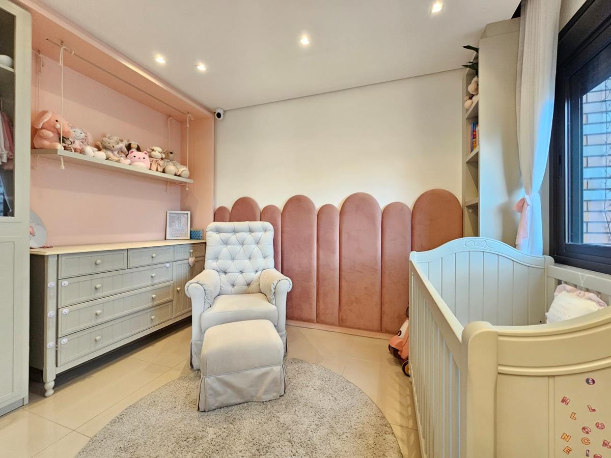 Possui living amplo e aconchegante distribuídos em dois ambientes com lareira e churrasqueira, lavabo, cozinha totalmente planejada e mobiliada com área de serviço integrada.