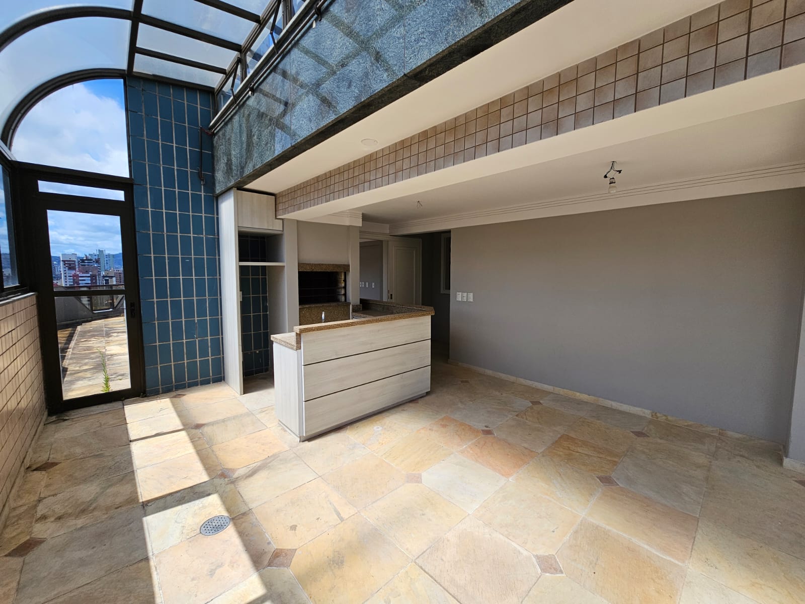 Terraço fechado com jacuzzi, perfeito para relaxamento.